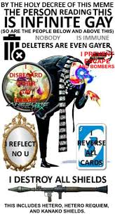 By The Holy Decree Of This Meme The Person Below This Is Infinite Gay Is Immune Deleters Are Even Gayer Nobody Disreard Her Reverse All Cards Reflect No U I Destroy All
